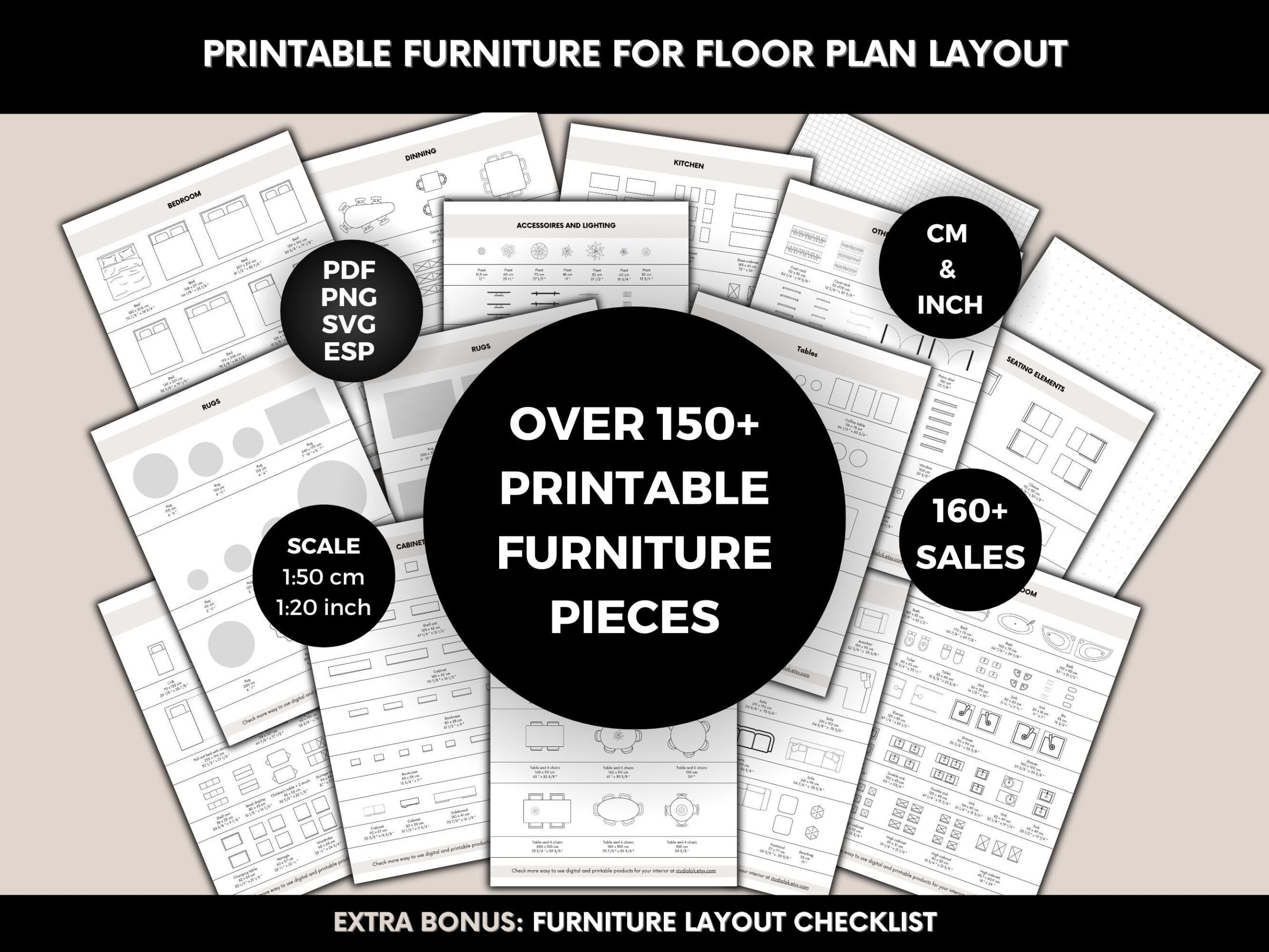 Printable Scale Furniture Templates Interior Design 1 50 Scale DIY Miniature Furniture Cutouts For Floor Plan Layouts Home Decor Planning Etsy UK