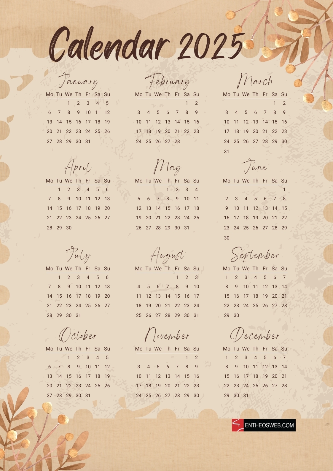 Free Printable 2025 Calendars Free Printable 2025 Calendars EntheosWeb