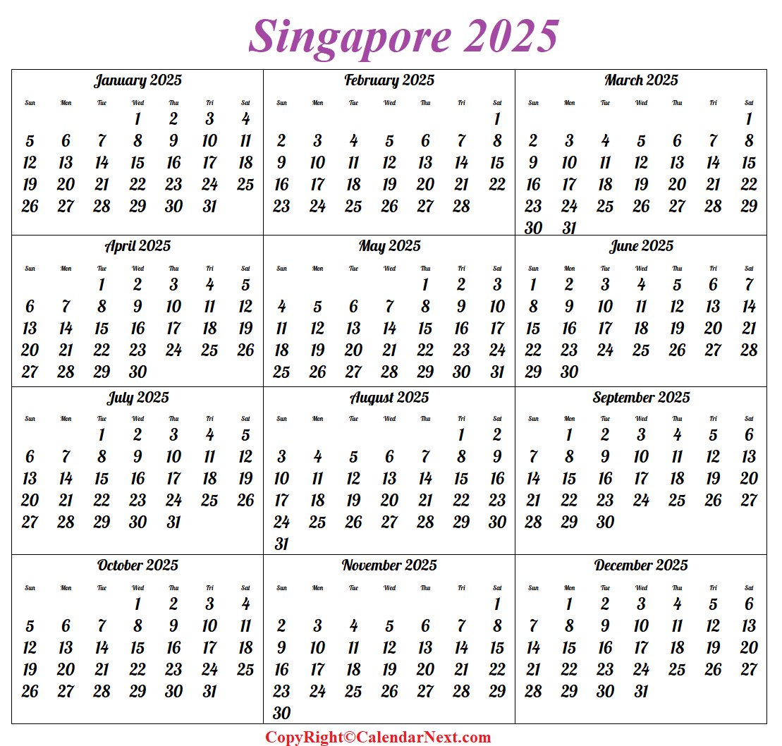 Singapore Calendar Year 2025 Singapore Calendar