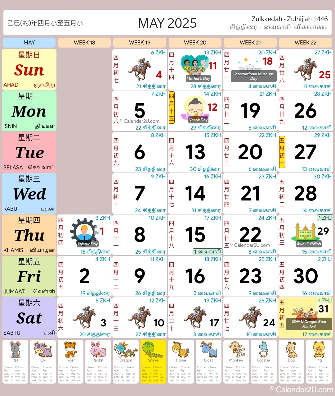Singapore Calendar Year 2025 Traditional Horse Design Singapore Calendar