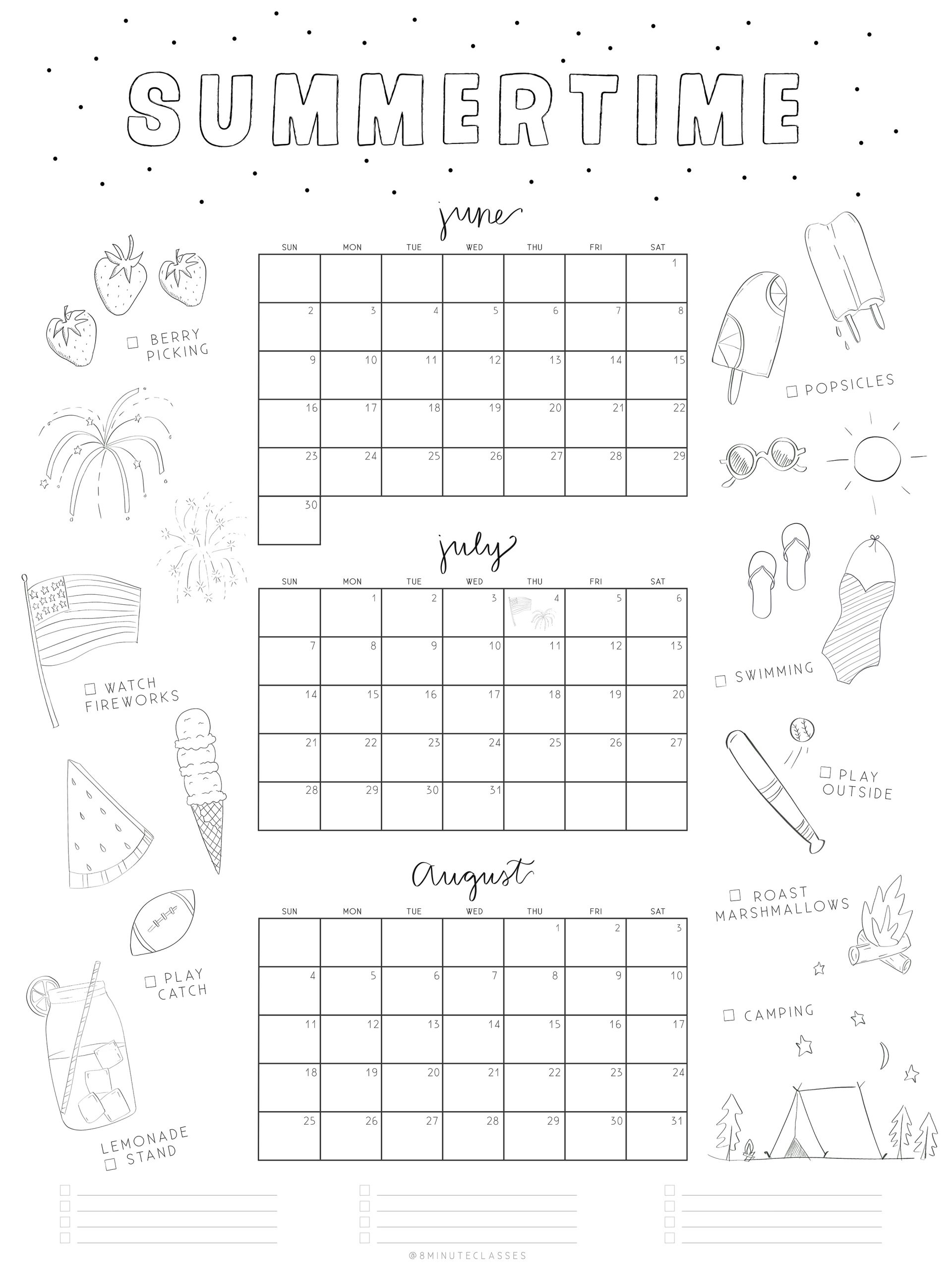 2025 Summer Calendar 8 Minute Classes