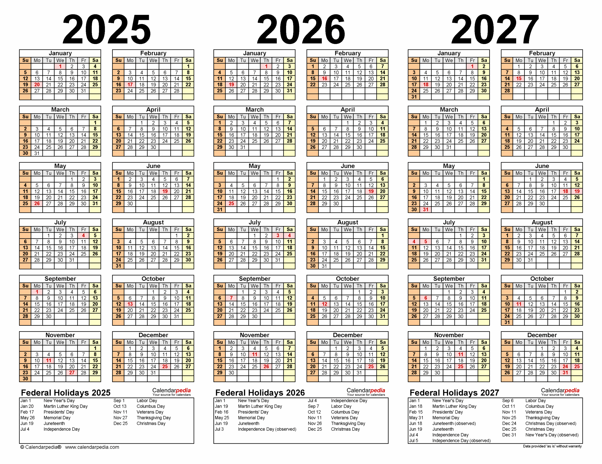 Don’t wait until the last minute to start planning. Get your hands on a printable 3-year calendar for 2025 to 2027 today and take control of your schedule and your future.