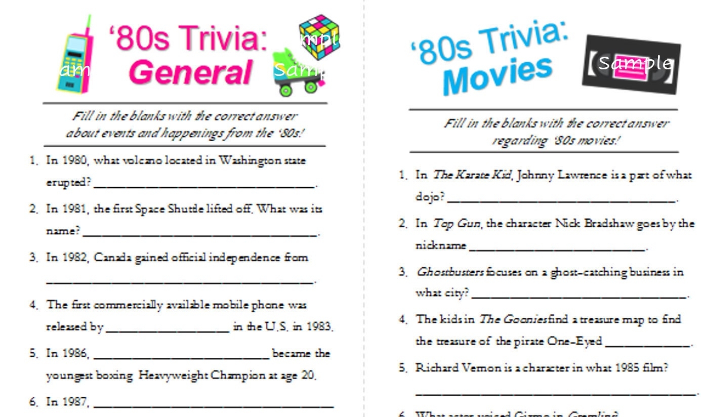 80s Trivia Pack Printable Trivia 1980 s Game Includes Answers Etsy