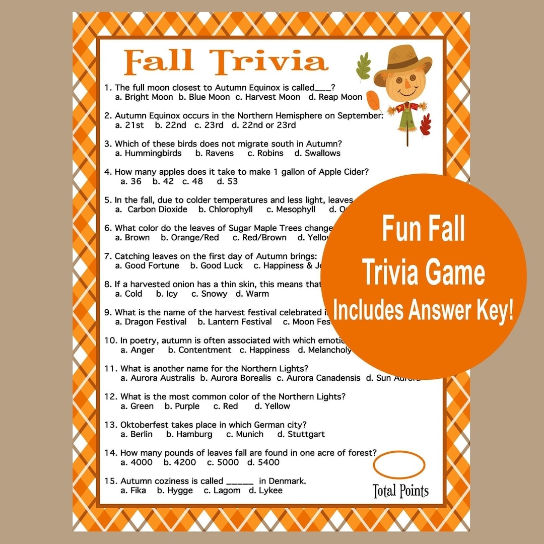 Fall Trivia Game Printable Autumn Game Fall Time Activities For Adults Kids Seniors Game For Fall Harvest Game Virtual Icebreaker Etsy