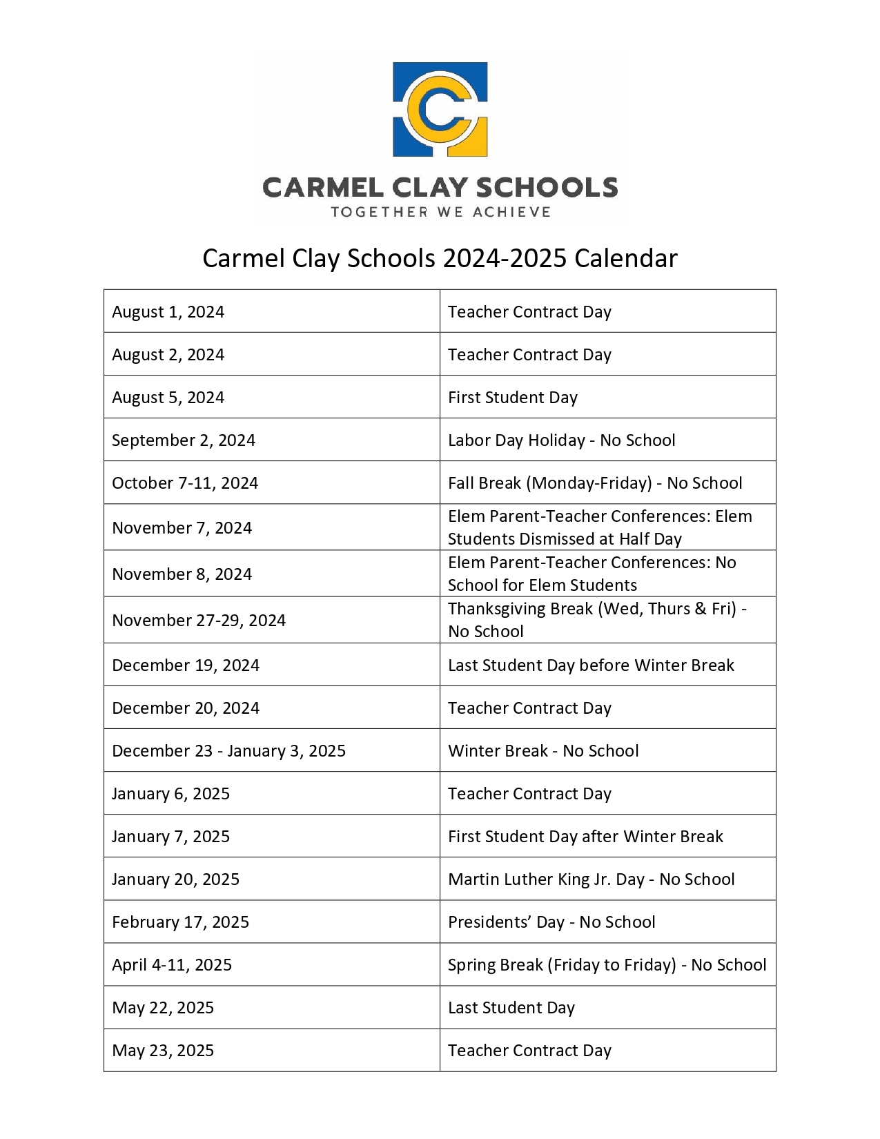 Don’t wait any longer – download and print the Carmel Clay Schools Calendar 2025-2026 today. Stay organized, stay informed, and make the most of your school year with this convenient and easy-to-use resource.