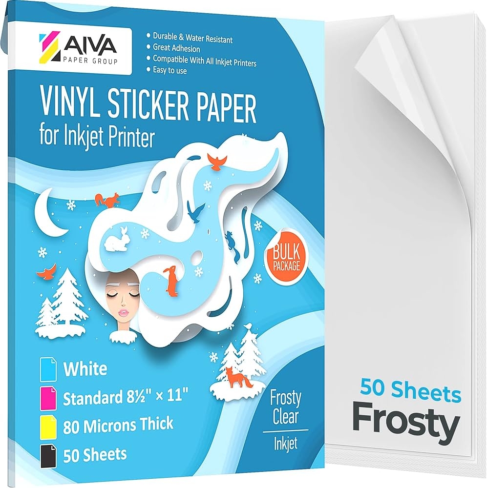 Printable Vinyl Inkjet Sticker Paper Frosty Clear Semi Transparent 50 Self Adhesive Sheets Waterproof Sticker Paper Standard Letter Size 8 5 X 11 Amazon de Stationery Office Supplies