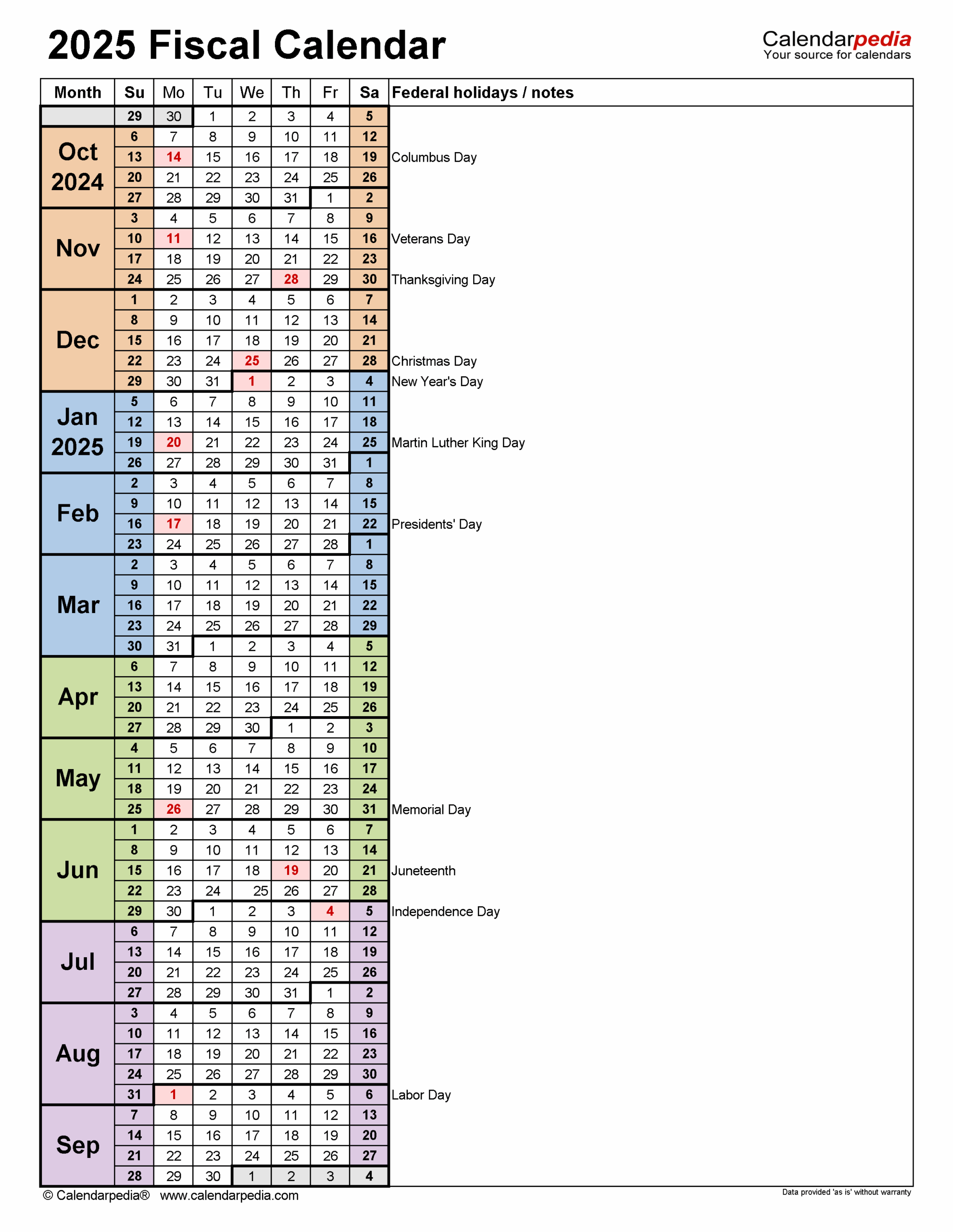 Fiscal Year 2025 Calendar Printable