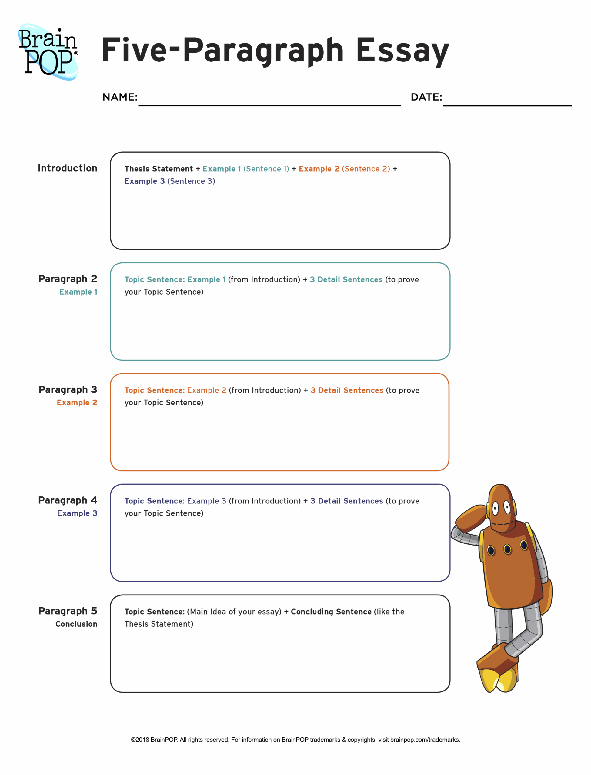 Five Paragraph Essay Graphic Organizer BrainPOP Educators