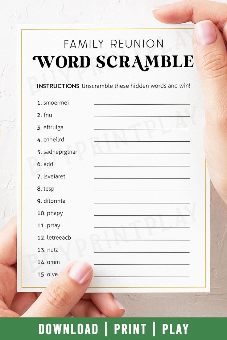 Family Gathering Word Scramble Family Reunion Party Games Printable Activities For Family Game Night Digital Download Etsy