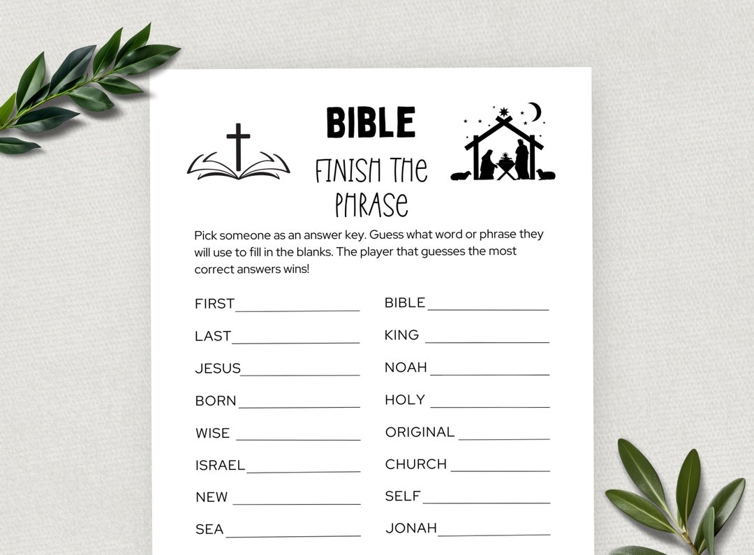 Printable Bible Finish The Phrase Bible Games Fun Christian Youth Group Game Sunday School Church Study Activity For Kids And Adults Etsy