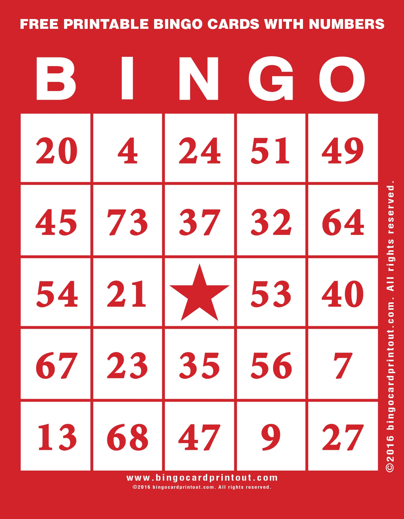 Free Printable Bingo Cards With Numbers