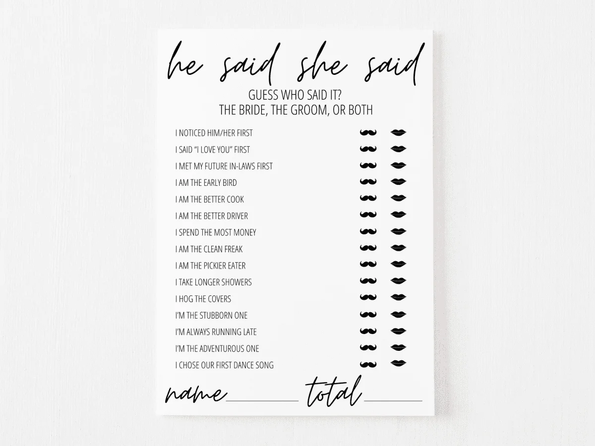 So, if you’re looking for a fun and interactive game to play at your next bridal shower, consider downloading a free printable version of “He Said She Said.” It’s a great way to bring everyone together, share some laughs, and celebrate the upcoming wedding in style!