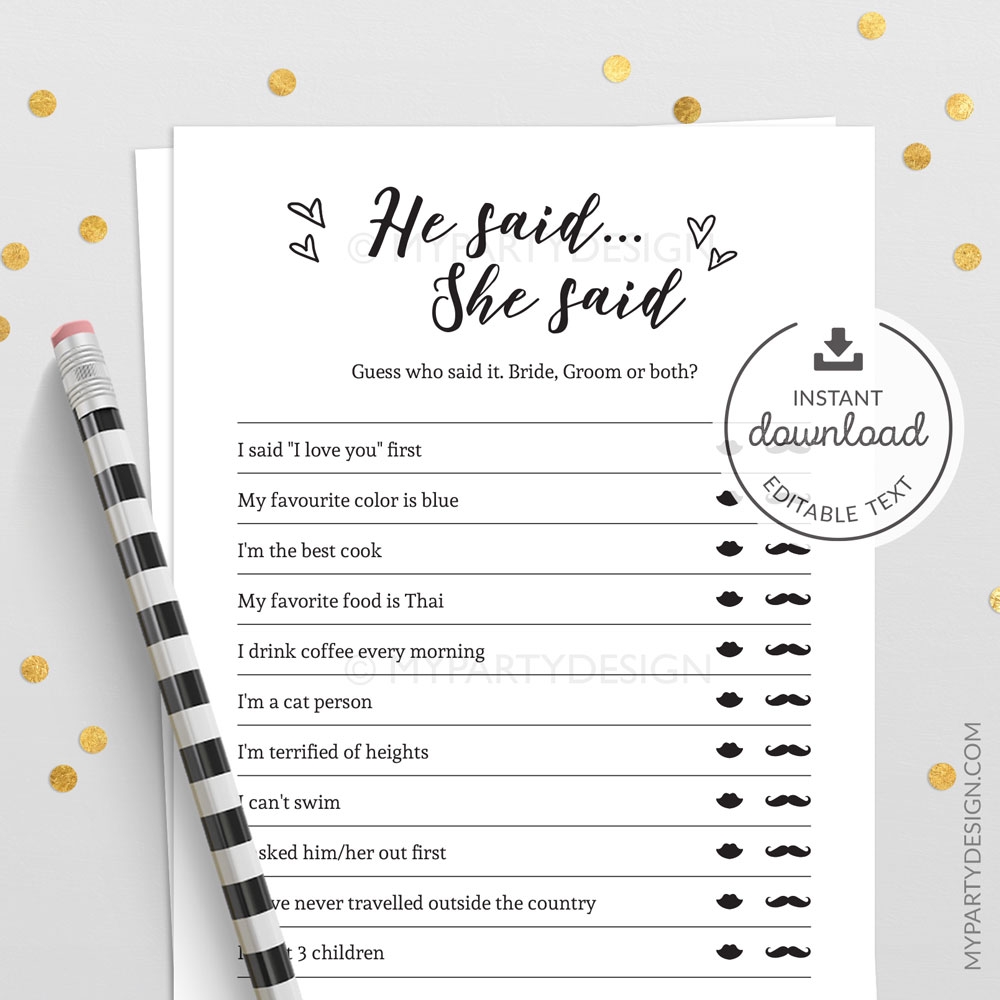 Free Printable Bridal Shower Games He Said She Said