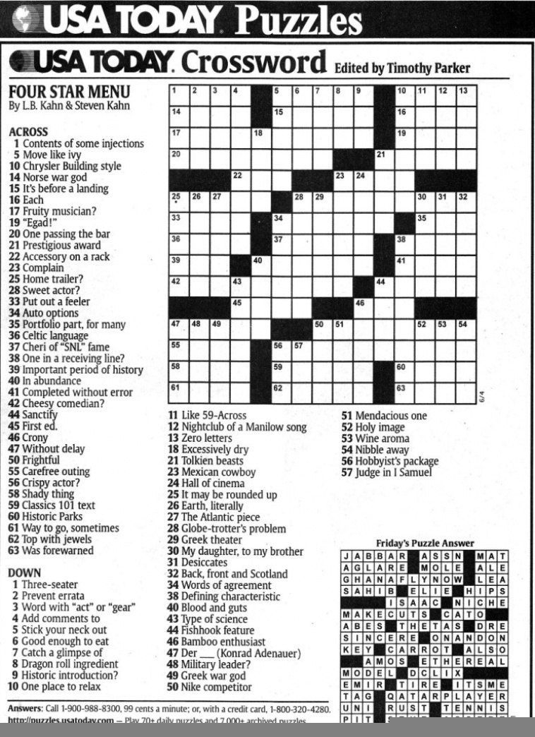 Free Printable Crosswords Usa Today
