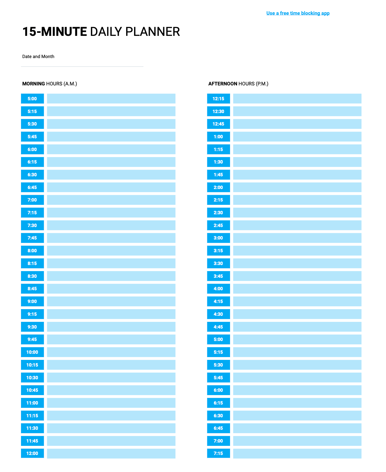 Free Printable Daily Planner 15 Minute Intervals