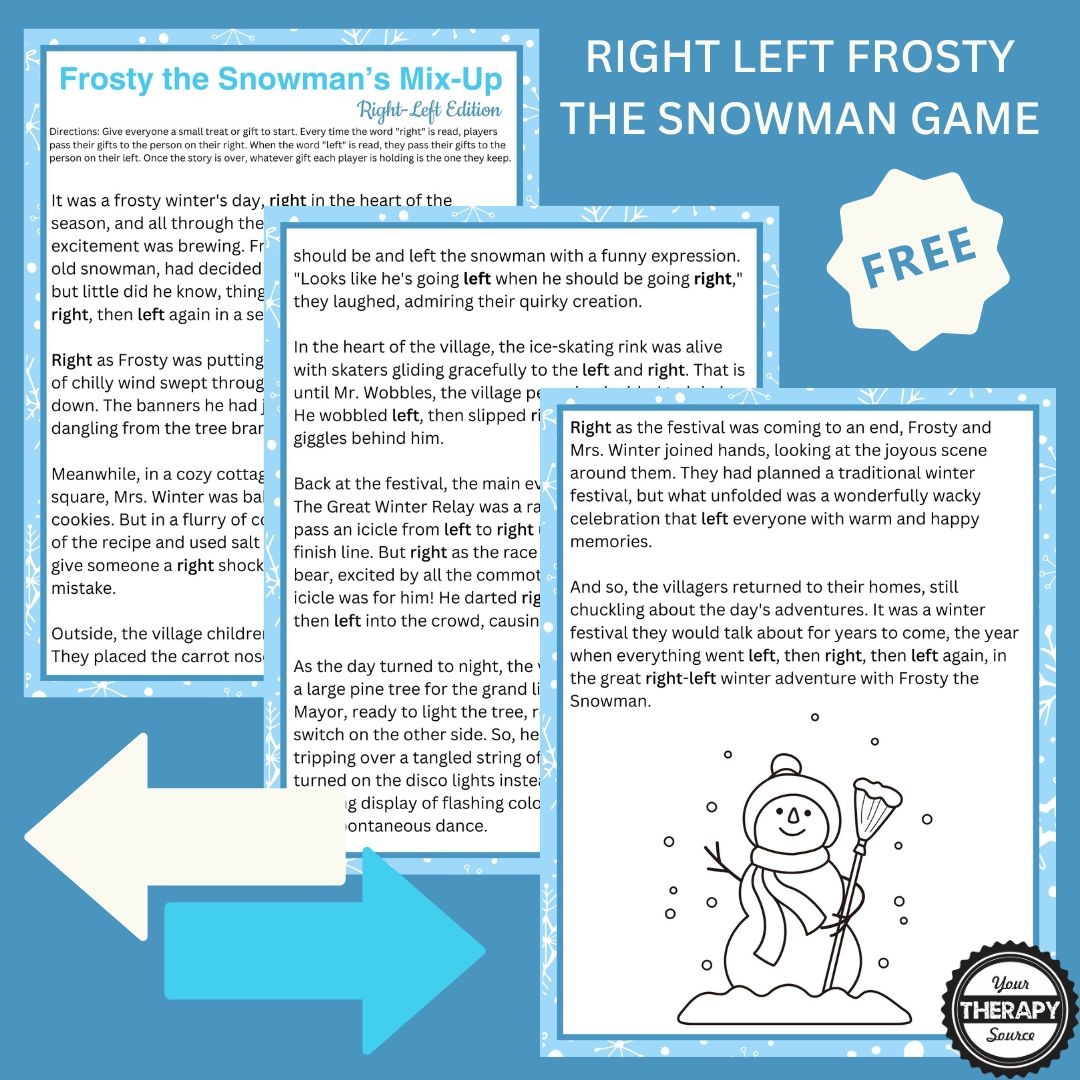 Free Printable Right Left Frosty The Snowman Game Your Therapy Source
