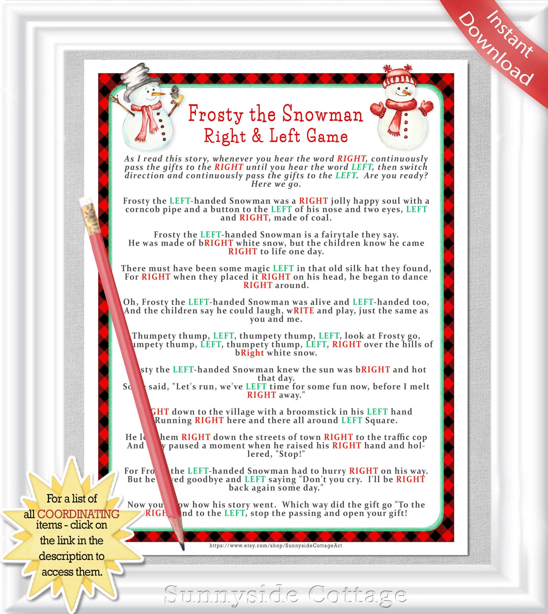 To play the Free Printable Frosty The Snowman Left Right Game, all you need to do is download and print out the game cards. You can find free templates online or create your own customized version. Then, gather your guests in a circle and start reading the story.