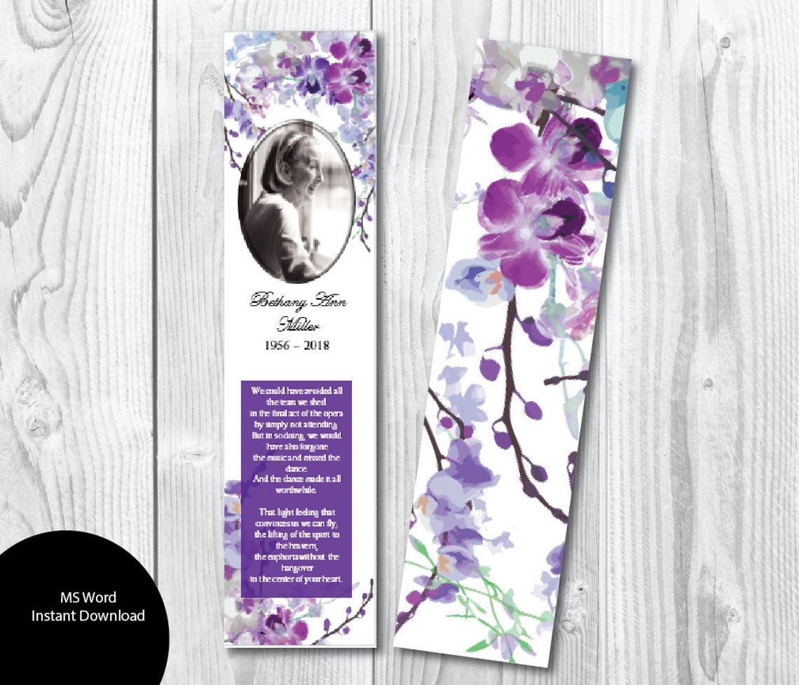 Purple Orchid Funeral Bookmark Template 2 X 8 Funeral Design Studio
