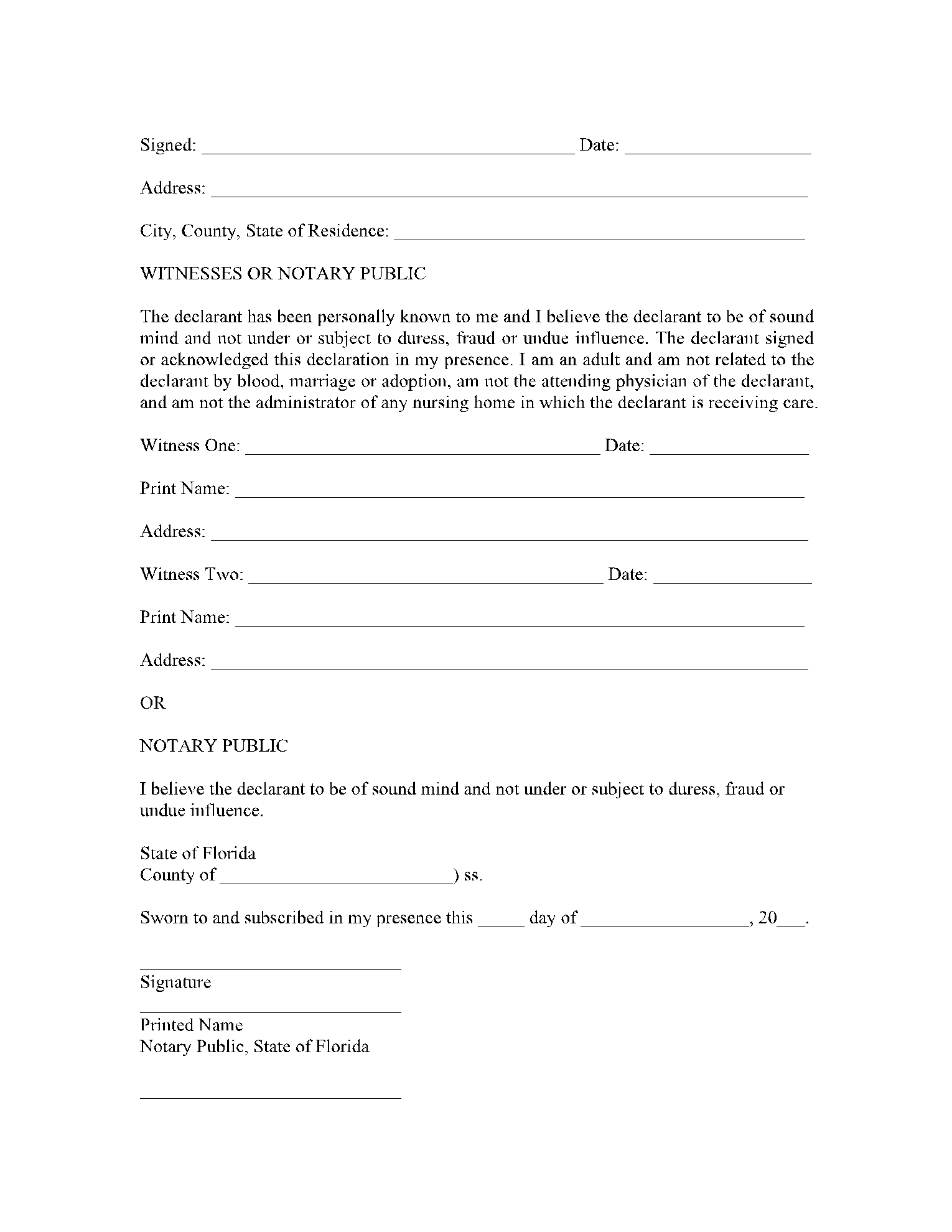 Free Florida Living Will Form Template PDF EForms