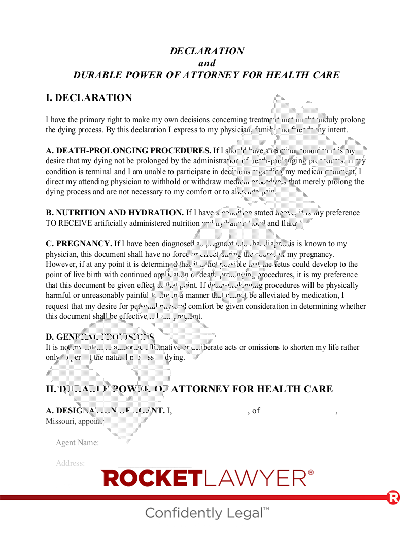 Free Missouri Living Will Declaration Form Template PDF EForms