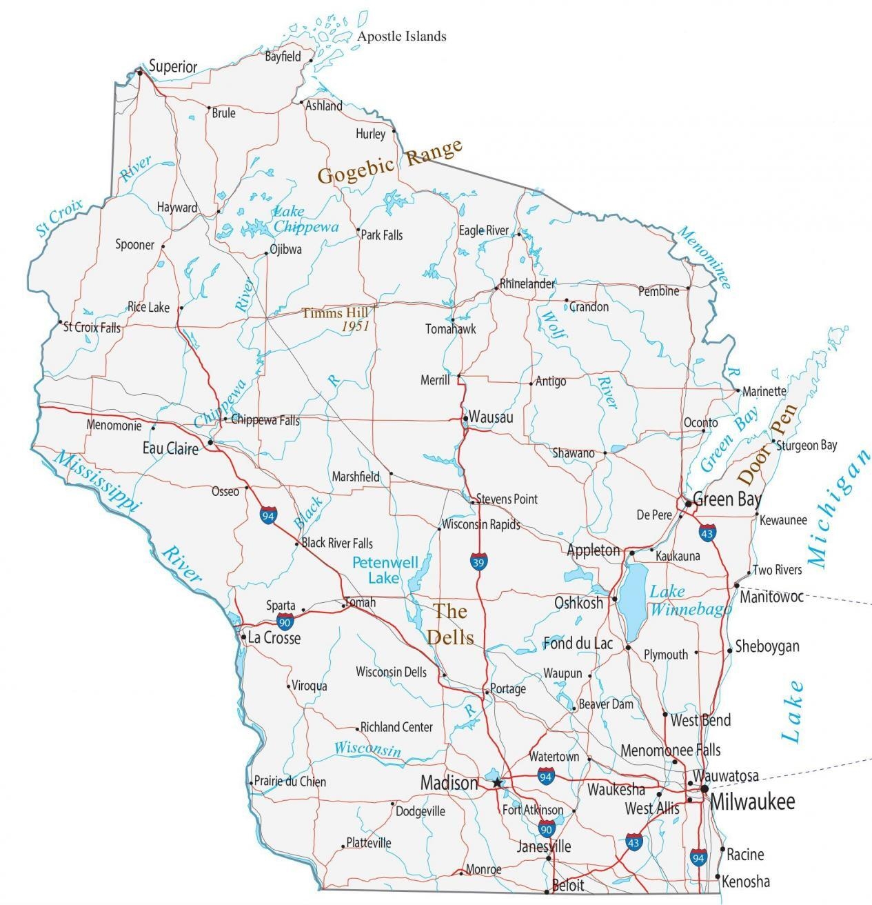 Free Printable Map Of Wisconsin