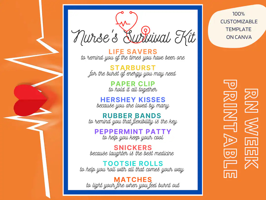 Nurse Survival Kit Gift Tags Editable Template Nurse Appreciation National Nurses Day Thank You Gifts Medical Staff Appreciation Week Etsy