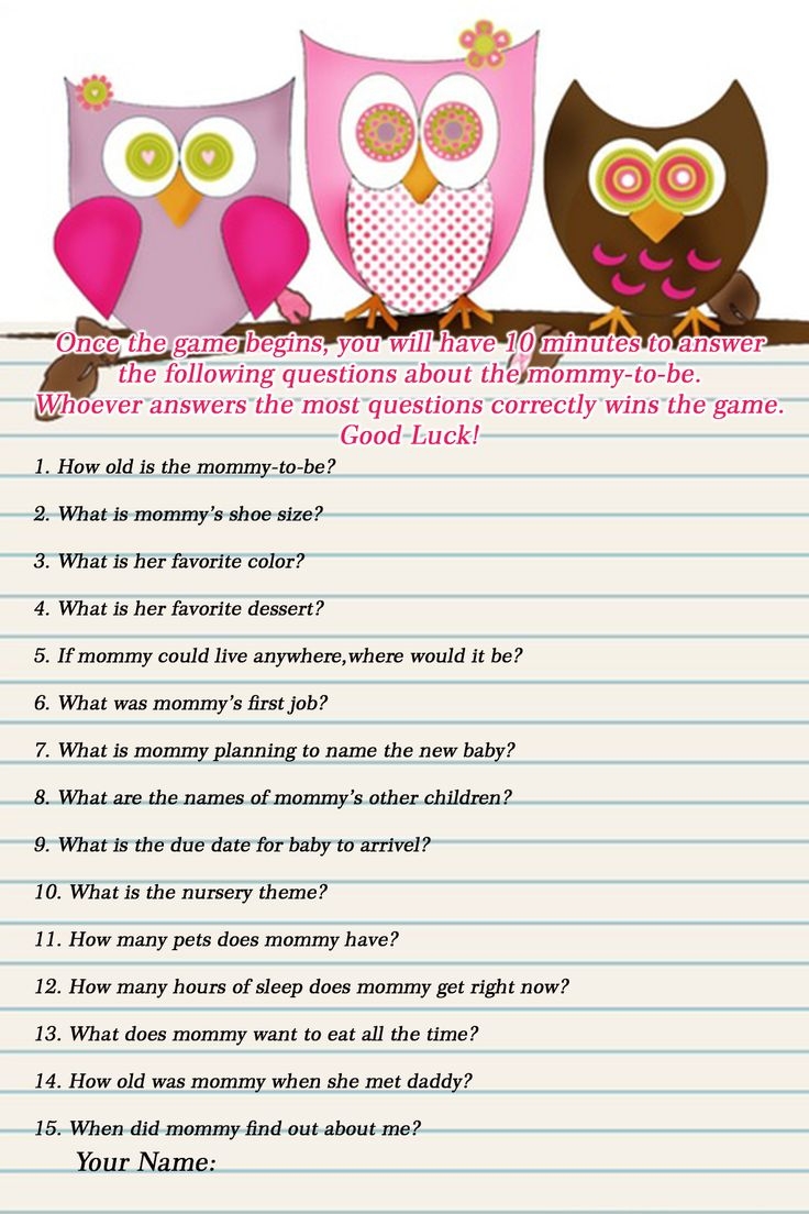 Free Printable Owl how Well Do You Know The Mommy Tobe Game
