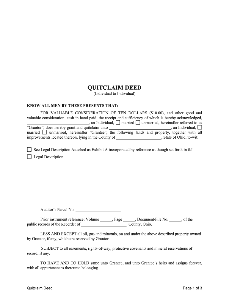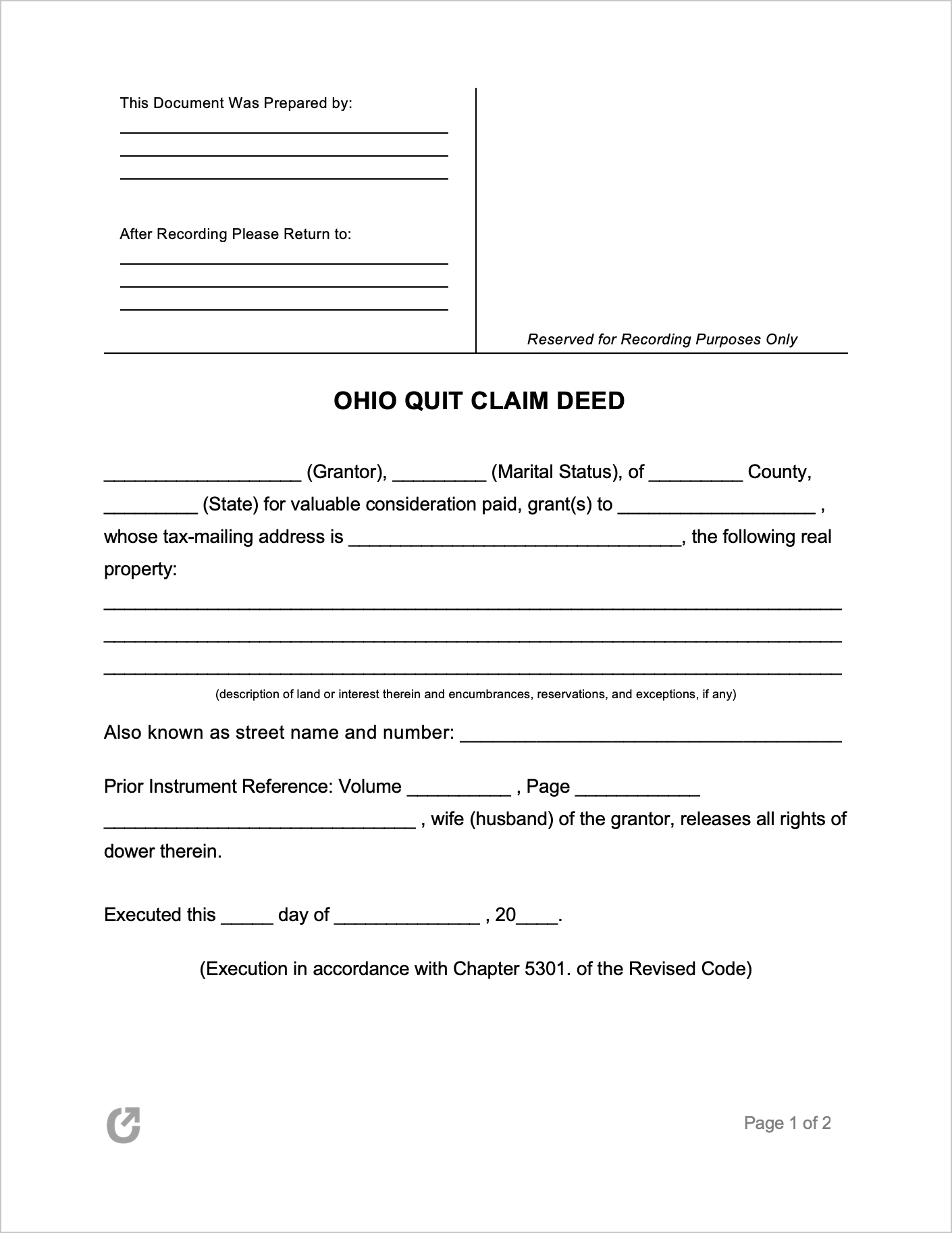 Ohio Quit Claim Deed Form Free Template CocoSign