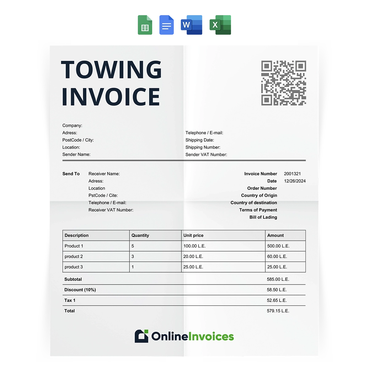 Towing Invoice Template Free Download Word Excel Google Docs And Sheets