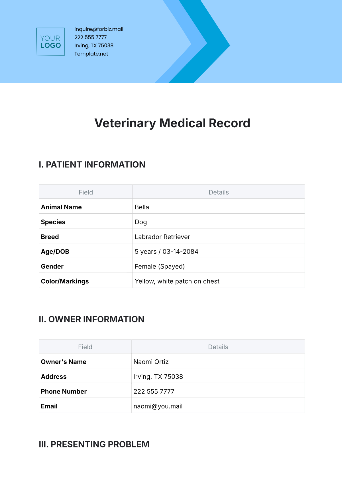 Free Printable Vet Record Templates