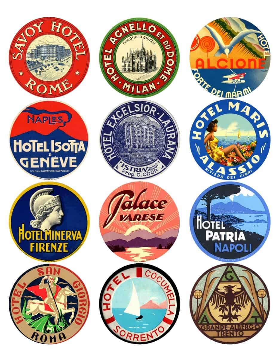 12x VINTAGE LUGGAGE LABELS FROM ITALY Vintralab