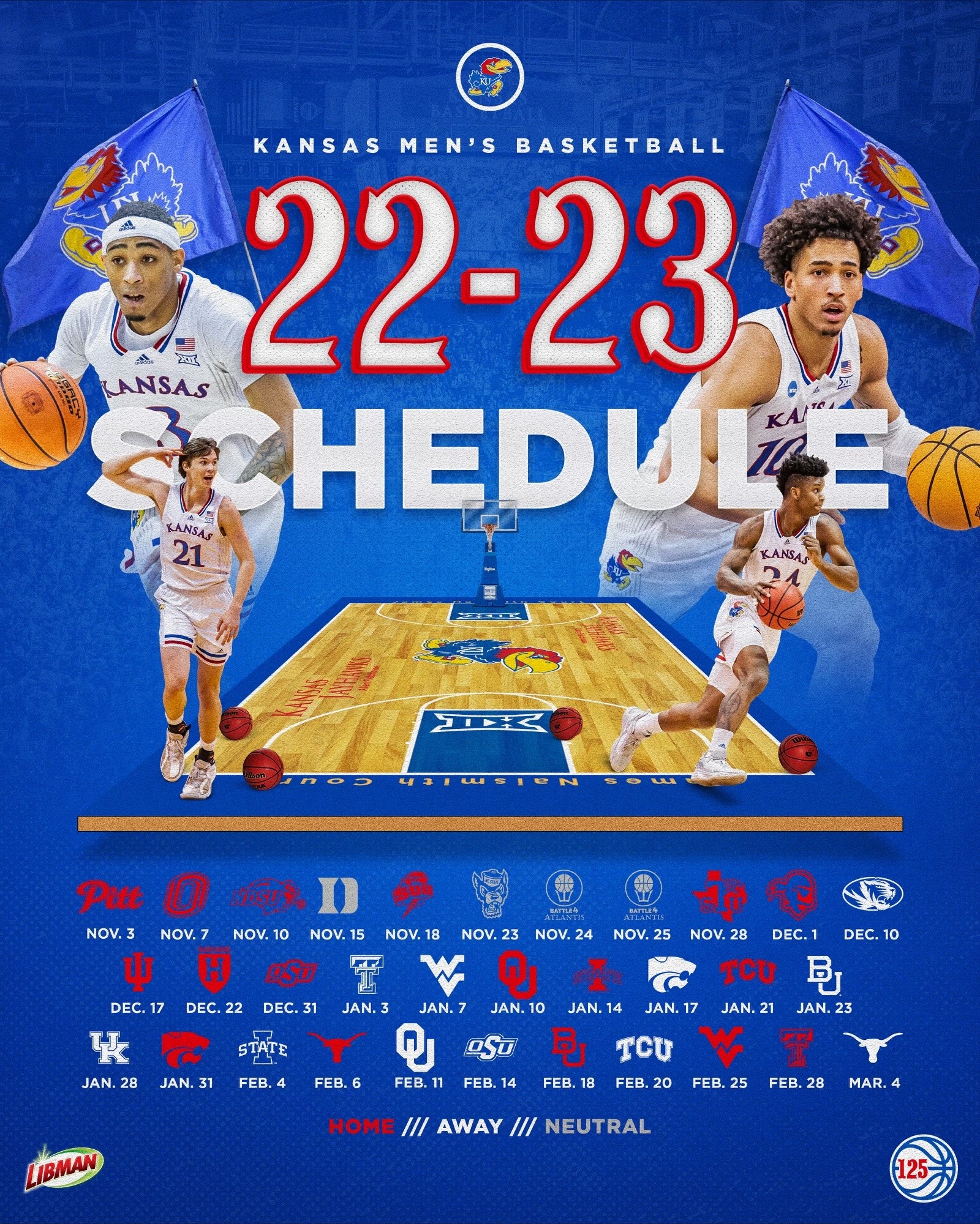 Don’t miss out on any of the action this season. Download your Ku Men’s Basketball schedule printable now and start marking your calendar for all the exciting games to come. Let’s go Ku Men!