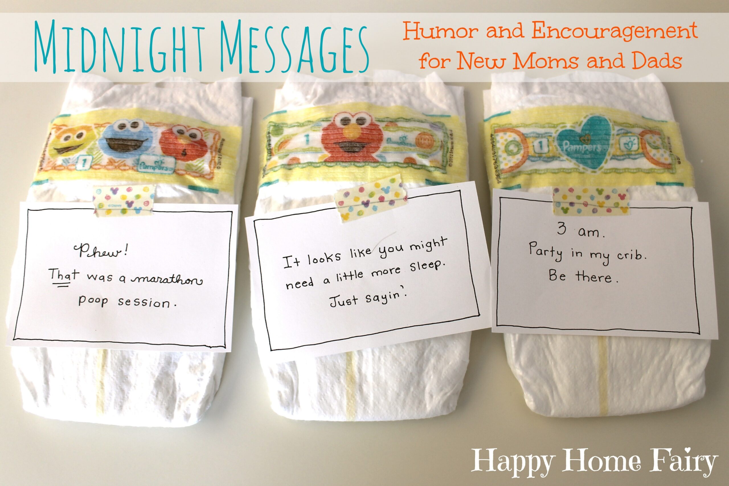 Simply download and print our free template, cut out the messages, and keep them handy near the changing table. When you’re stumbling through a diaper change at 3 am, just grab a message and stick it on the diaper. It’s a simple way to bring a little joy to those late-night moments.