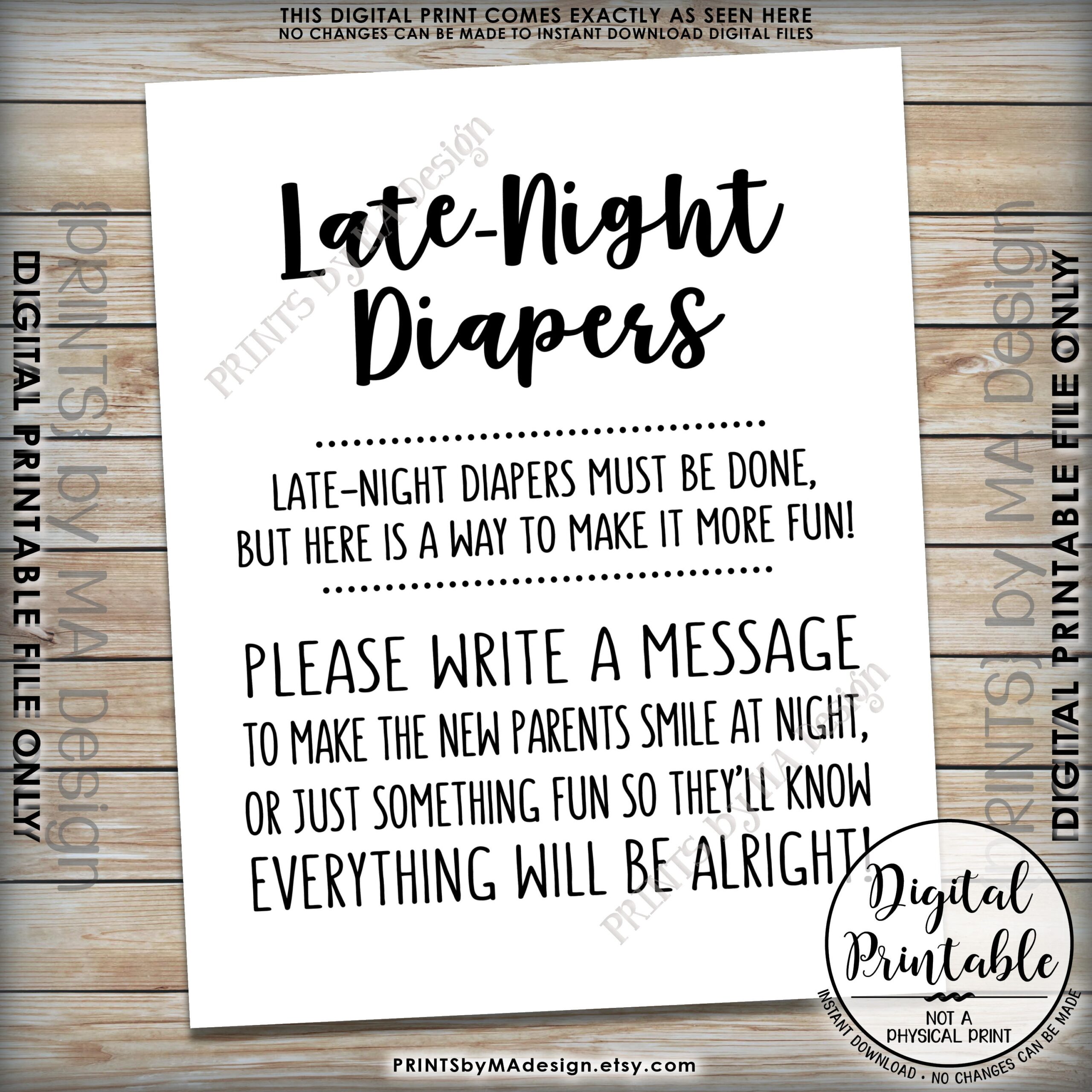 Free Baby Shower Black And White Printables Instant Download Late Night Diapers Instant Download Printables