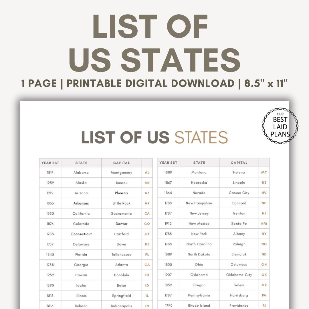 From Alabama to Wyoming, our printable list includes all 50 US states in alphabetical order. Whether you’re a geography buff or just want to brush up on your state knowledge, this list is perfect for you. Feel free to color-code the states, mark off the ones you’ve visited, or use it for your next trivia night!