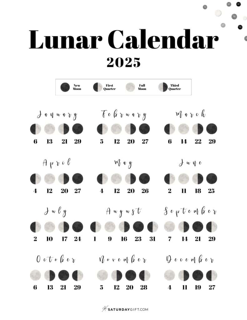 Moon Phase Calendar 12 Cute Free Printable 2025 Lunar Calendars