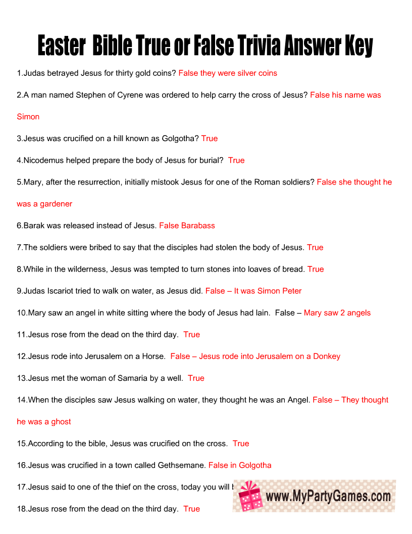 So, what are you waiting for? Download your Printable Bible True Or False Questions And Answers today and embark on a journey of discovery and fun. Challenge yourself, challenge your friends, and see how much you really know about the Bible. You might be surprised by what you learn!