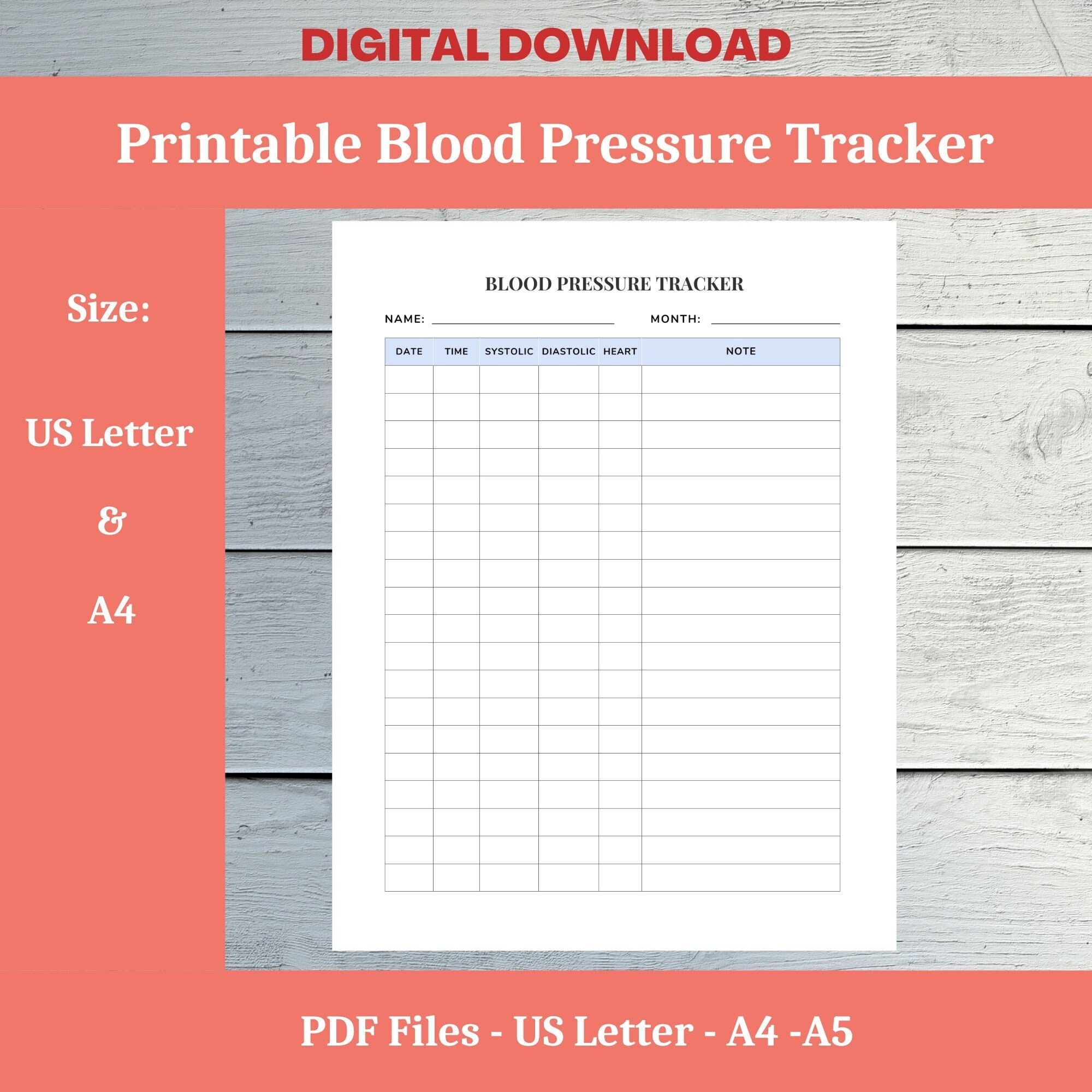 Blood Pressure Log Printable Blood Pressure Tracker Medical Planner Inserts Monthly Blood Pressure Chart Etsy
