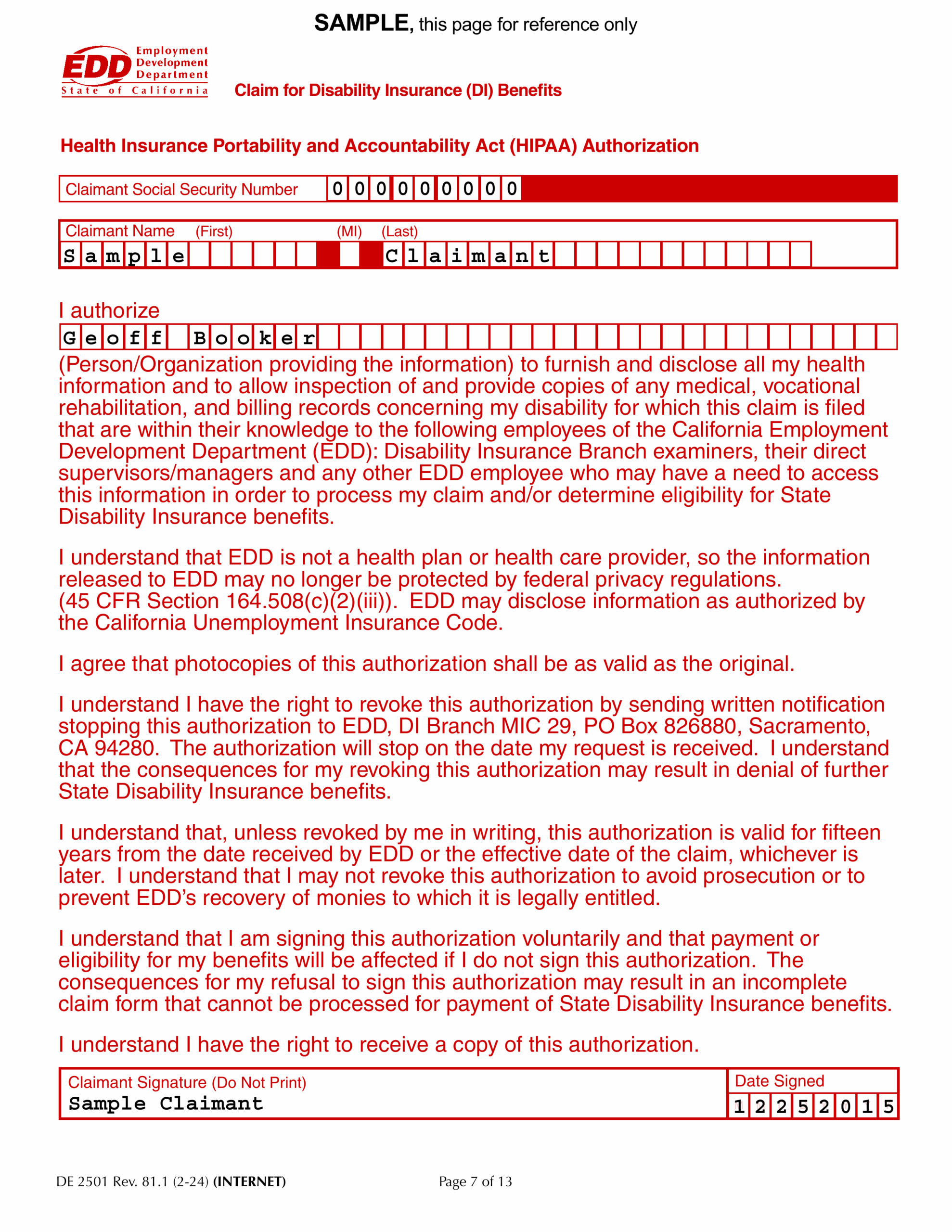 By using a printable DE 2501 claim form, you can streamline the process of applying for disability benefits in California. Having access to the necessary paperwork at your fingertips can make a stressful situation a little bit easier to manage. Don’t hesitate to reach out to the EDD if you need assistance or have any questions along the way.