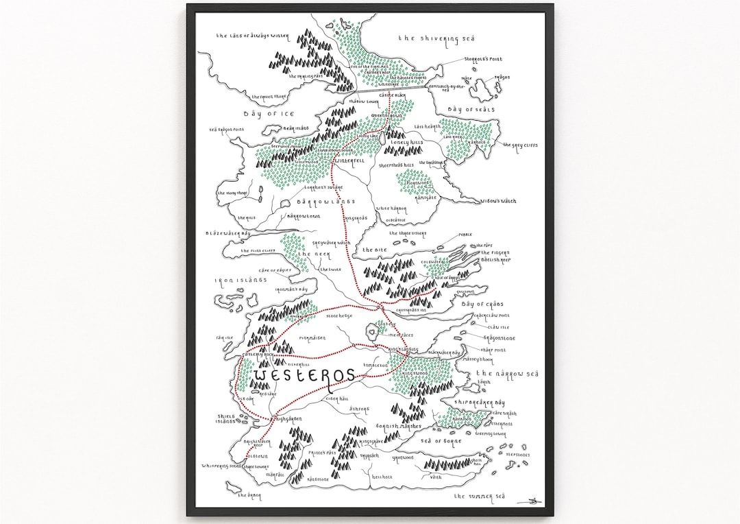 WESTEROS A Game Of Thrones Map Print Fiktive Landkarte Minimalistische Karten Kunst Wandkunst Kunstdruck Etsy de