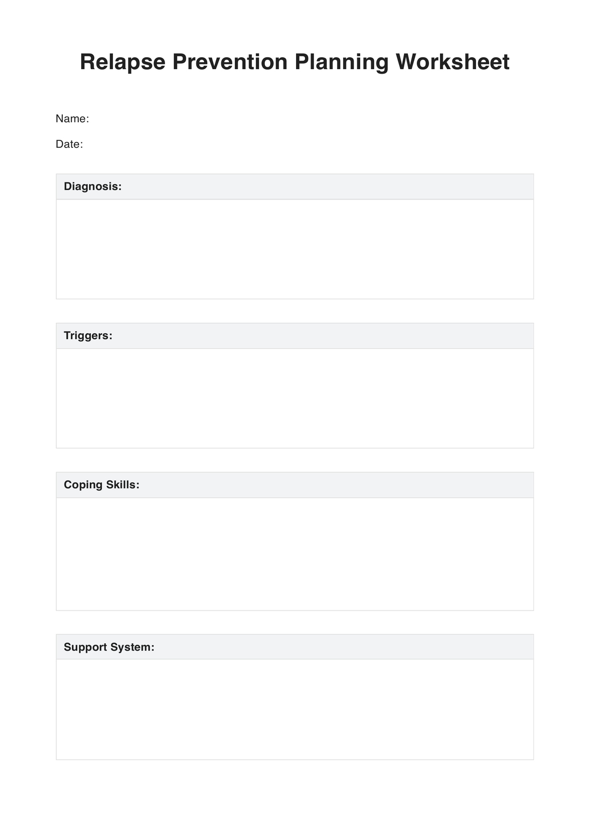 Relapse Prevention Worksheet Plan Template PDF