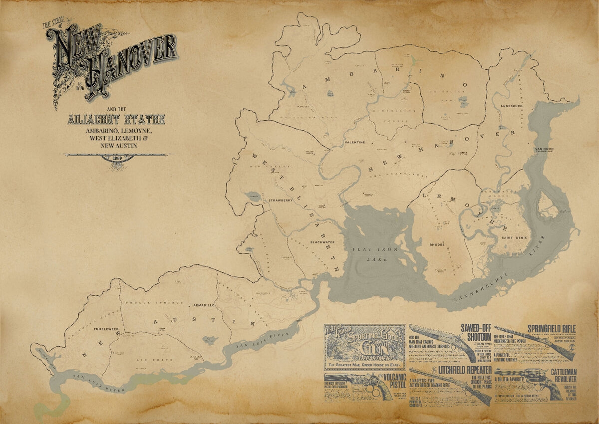 Red Dead Redemption 2 World 5 States Map High Quality A3 A2 A1 Prints EBay
