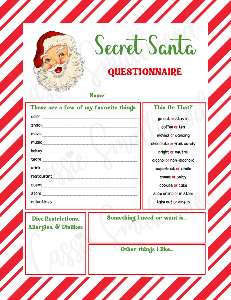 Free Printable Secret Santa Questionnaire Templates Cassie Smallwood