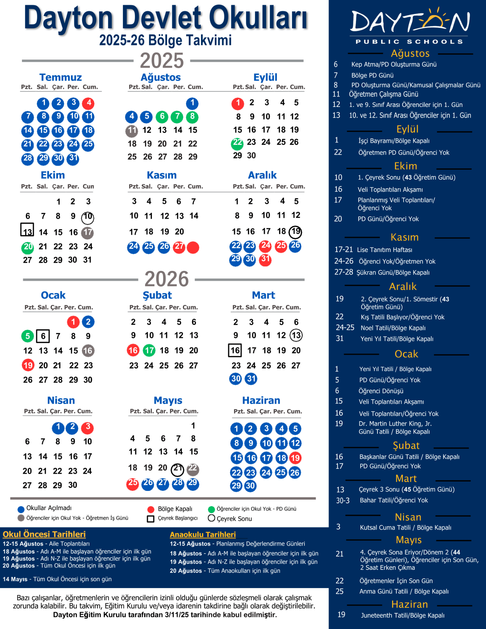2025 District Calendar