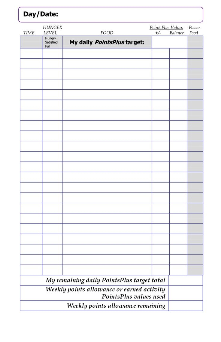 Weight Watchers Point Tracker Sheet 11 Free PDF Printables Printablee