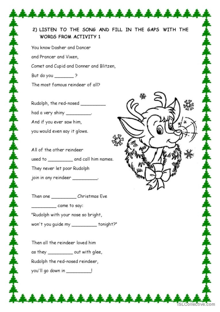 Rudolf The Red Nosed Reindeer LYRICS English ESL Worksheets Pdf Doc