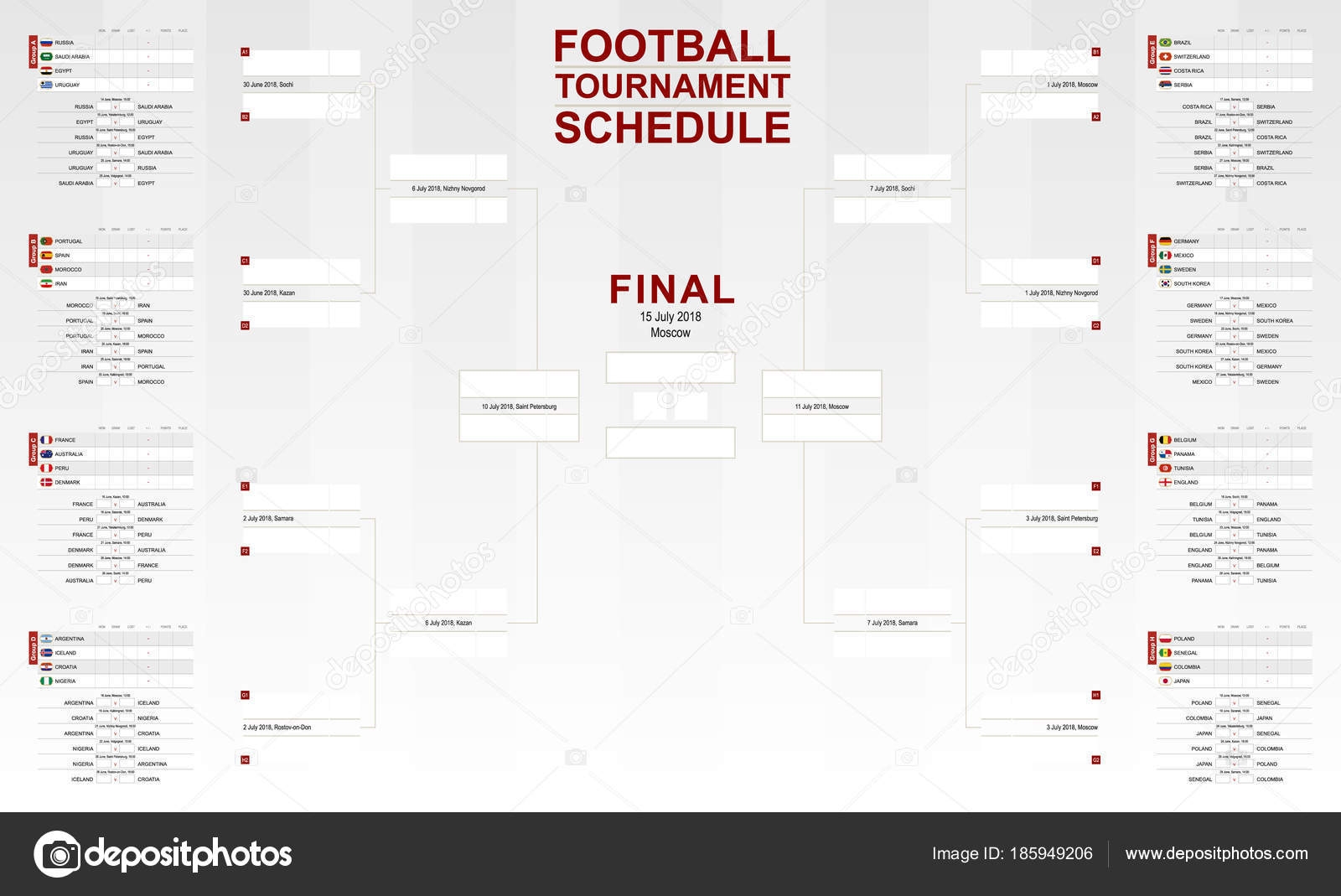 Football World Cup 2018 Tournament Schedule Vector Soccer Worksheets Library