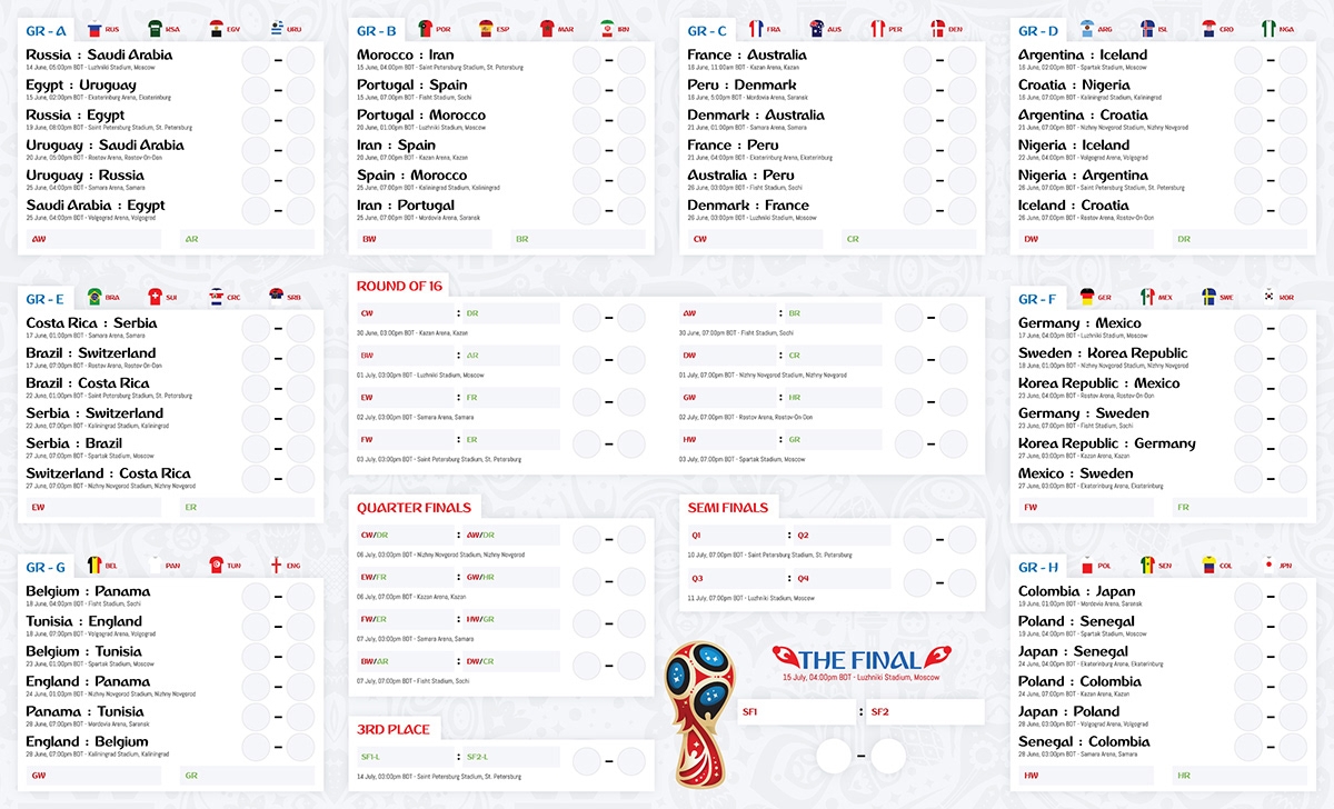 World Cup Wallchart 2018 Download Your Free Printable Predictor Worksheets Library