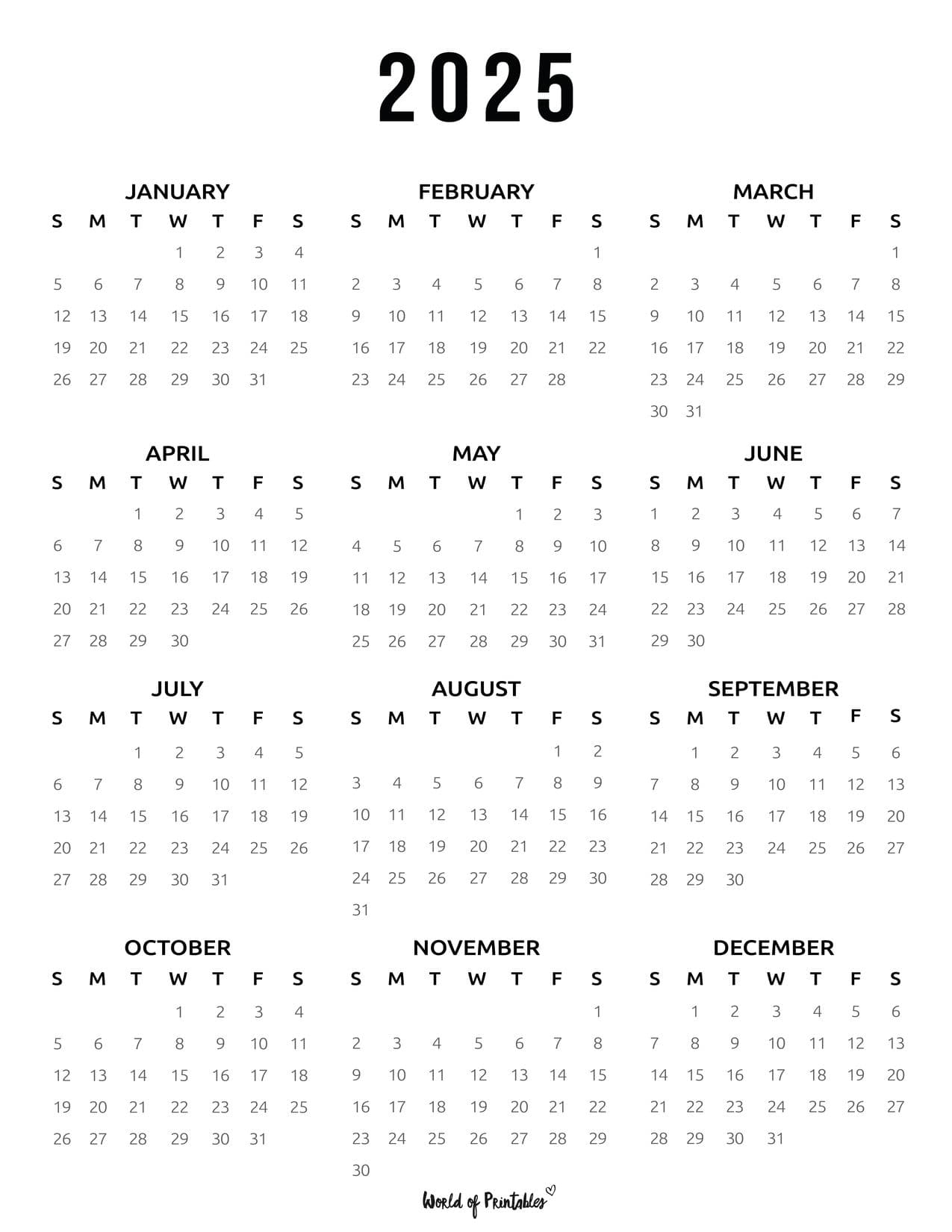 World Of Printables 2025 Calendar