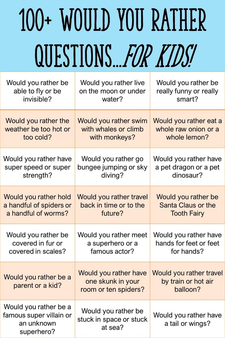 Would You Rather Questions For Kids Printable Game